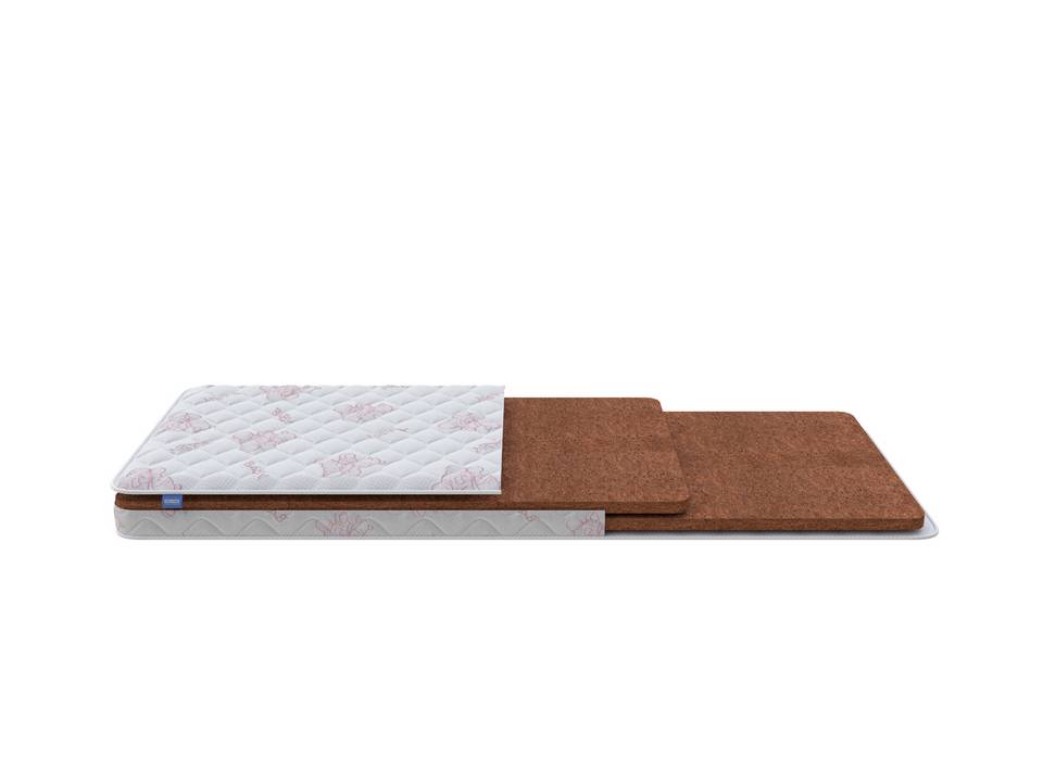 В составе натуральная кокосовая койра, которая обладает высоким воздухообменом и терморегуляцией, сохраняя благоприятный климат спального места, а так же является износостойким материалом. Такой матрас гарантирует здоровый отдых на длительный срок. Чехол из мягкой трикотажной ткани на основе хлопка, простеганный на объемном волокне.
