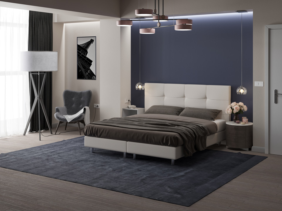 Изголовье кровати Bern украшено геометрической декоративной строчкой, выдержанной в строгом стиле. Благодаря элегантному и продуманному дизайну она легко впишется как в минималистичный, так и в классический интерьер.